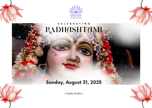 Please join us in celebrating Radhashtami - the divine appearance day of Srimati Radharani - on this Sunday, August 31st.