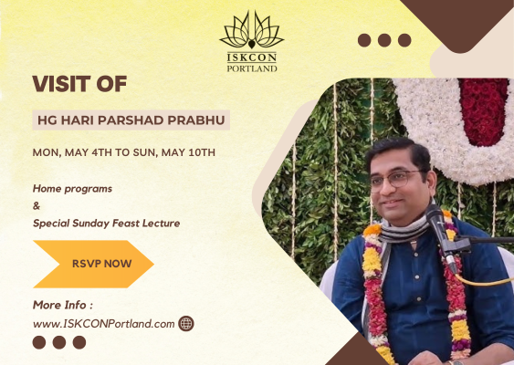 We are happy ro share that HG Hari Parshad prabhuji will be visiting Portland next month.