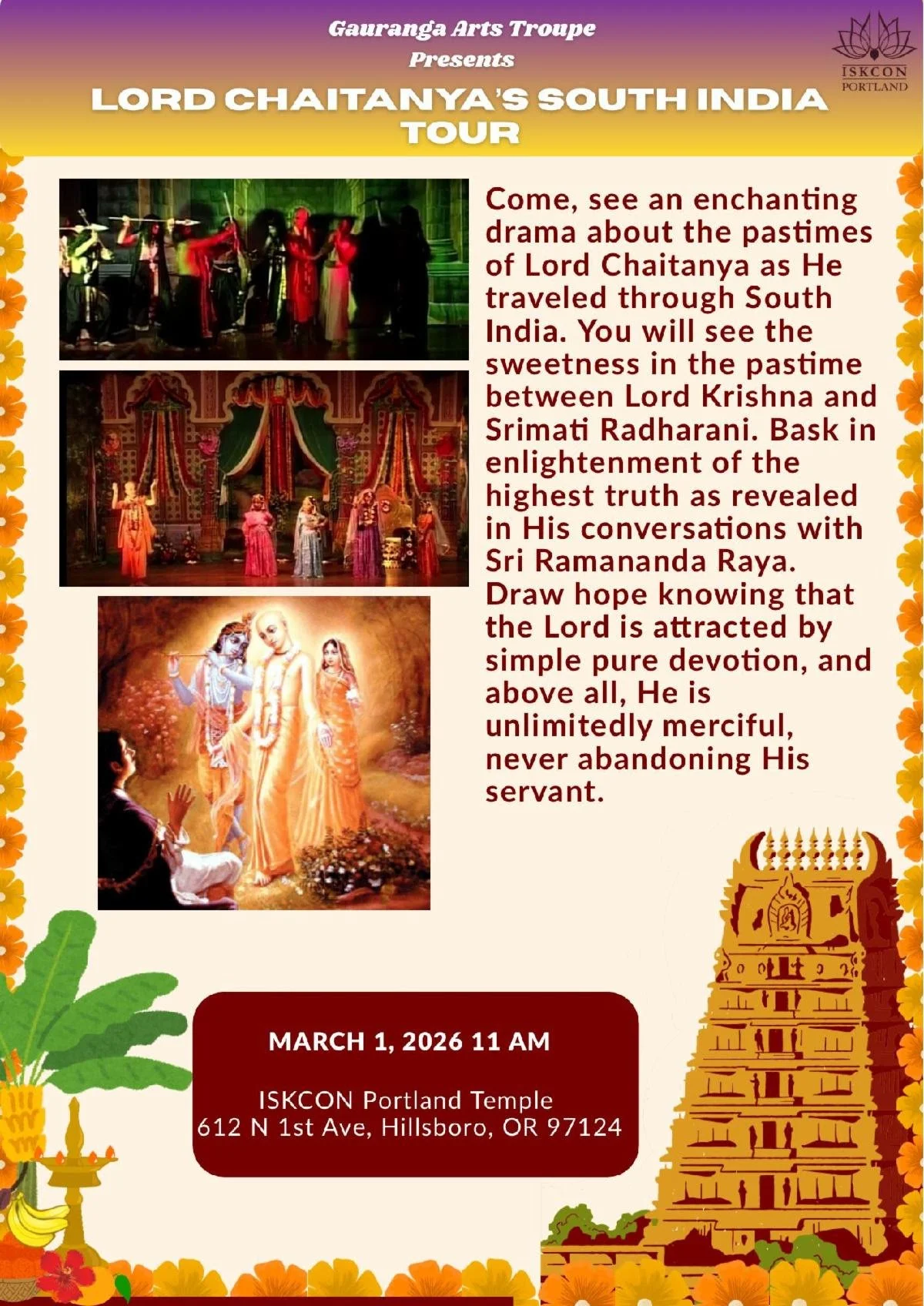 Come, see an enchanting drama about the pastimes of Lord Chaitanya as He traveled through South India.