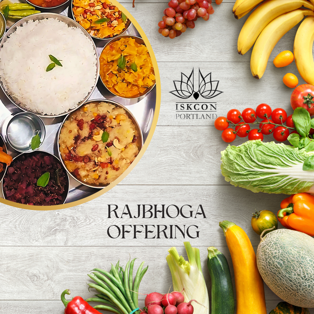The prasadam will be ready for pickup at 1 PM (Everyday Monday through Saturday).